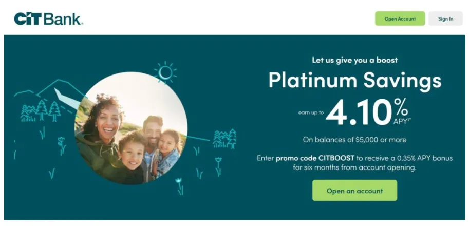 CIT Platinum Saving 新增了开户奖励,通过 saving boost 可以最高获取 4.1%APY!这个 boost 利息持续 6 个月,之后恢复为 3.75%APY。其实一般的高息账户目前也只有 3.5% 左右的 APY,这个账户非常良心了。注意,额外的利息要余额 $5000 以上部分才能获取高 APY,不过相比为了高利息而来,肯定不只放这么多钱的。FDIC 保险最高是 $250k 每个账户,不要超过这个数字比较好。