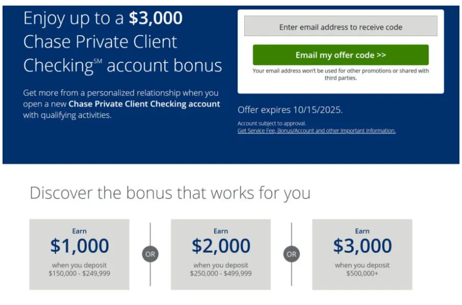 Chase Private 最高能拿到 $3000 奖励。三个档位的等效 APY 分别是 2.67% 、 3.2% 、 2.4%,主要是 CPC 本身的利率 0.01%,简直欺负人。不过 CPC 有一些申卡 special consider 的福利,对于想要申卡的人有点用。存第二档就好了,基本算是跟外面高息的 saving 差不多。