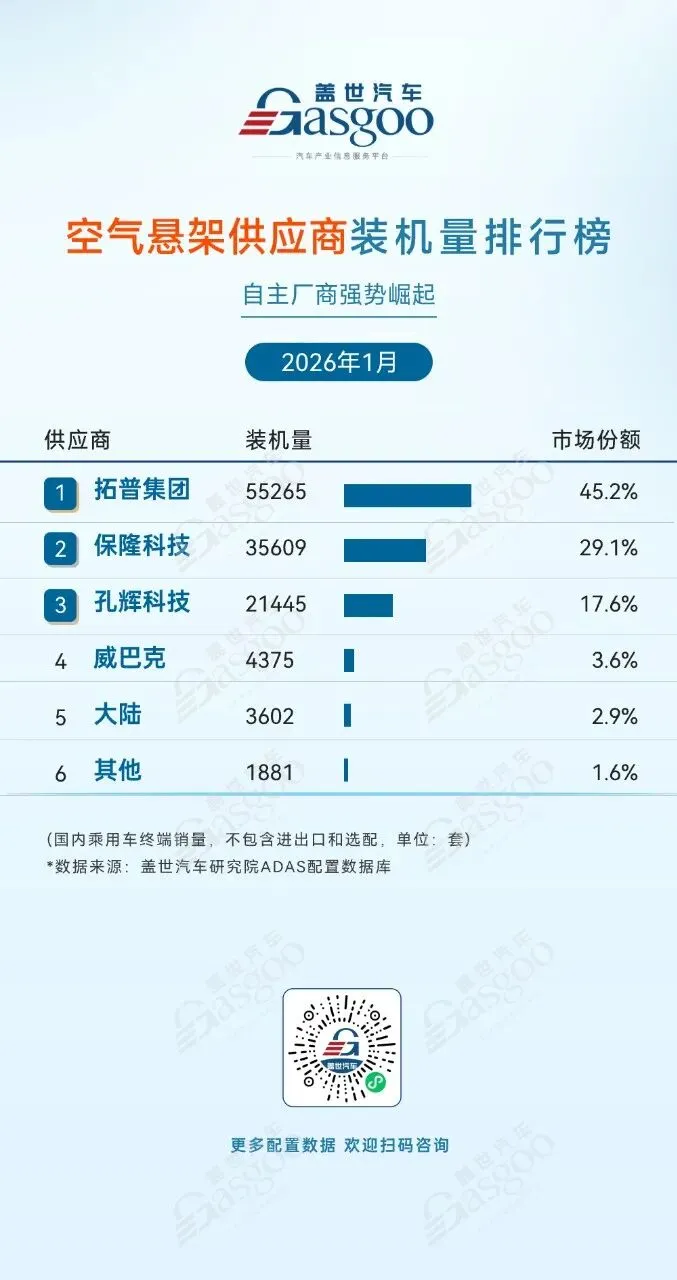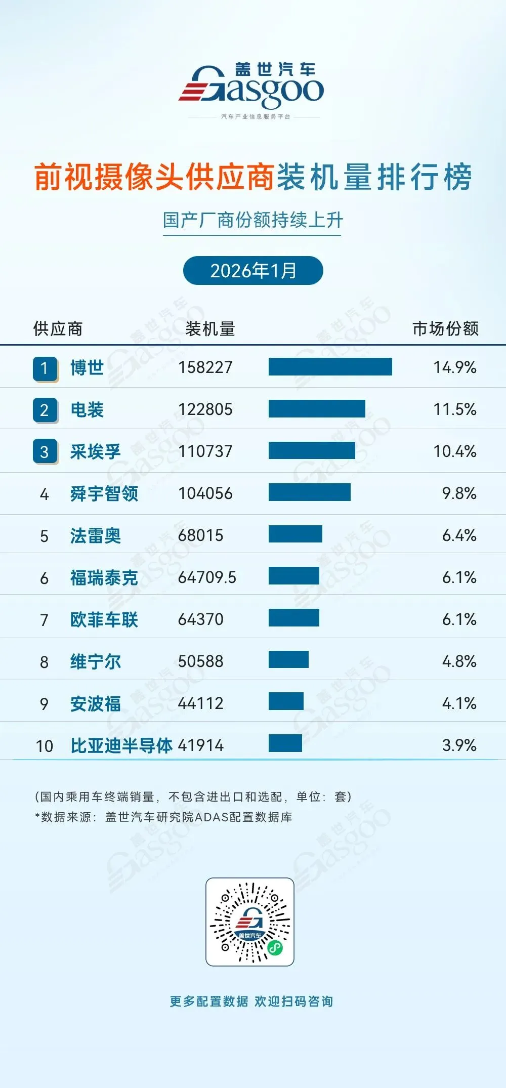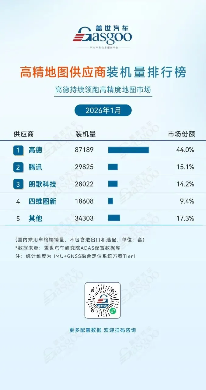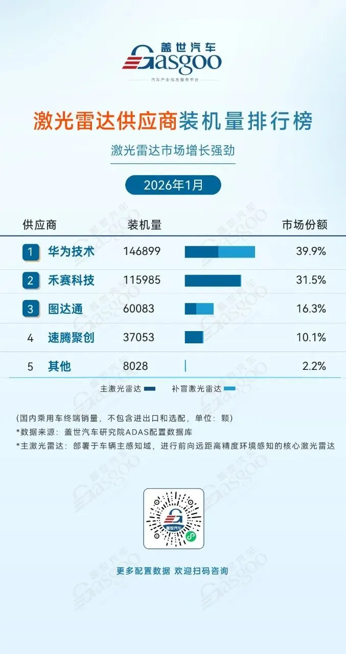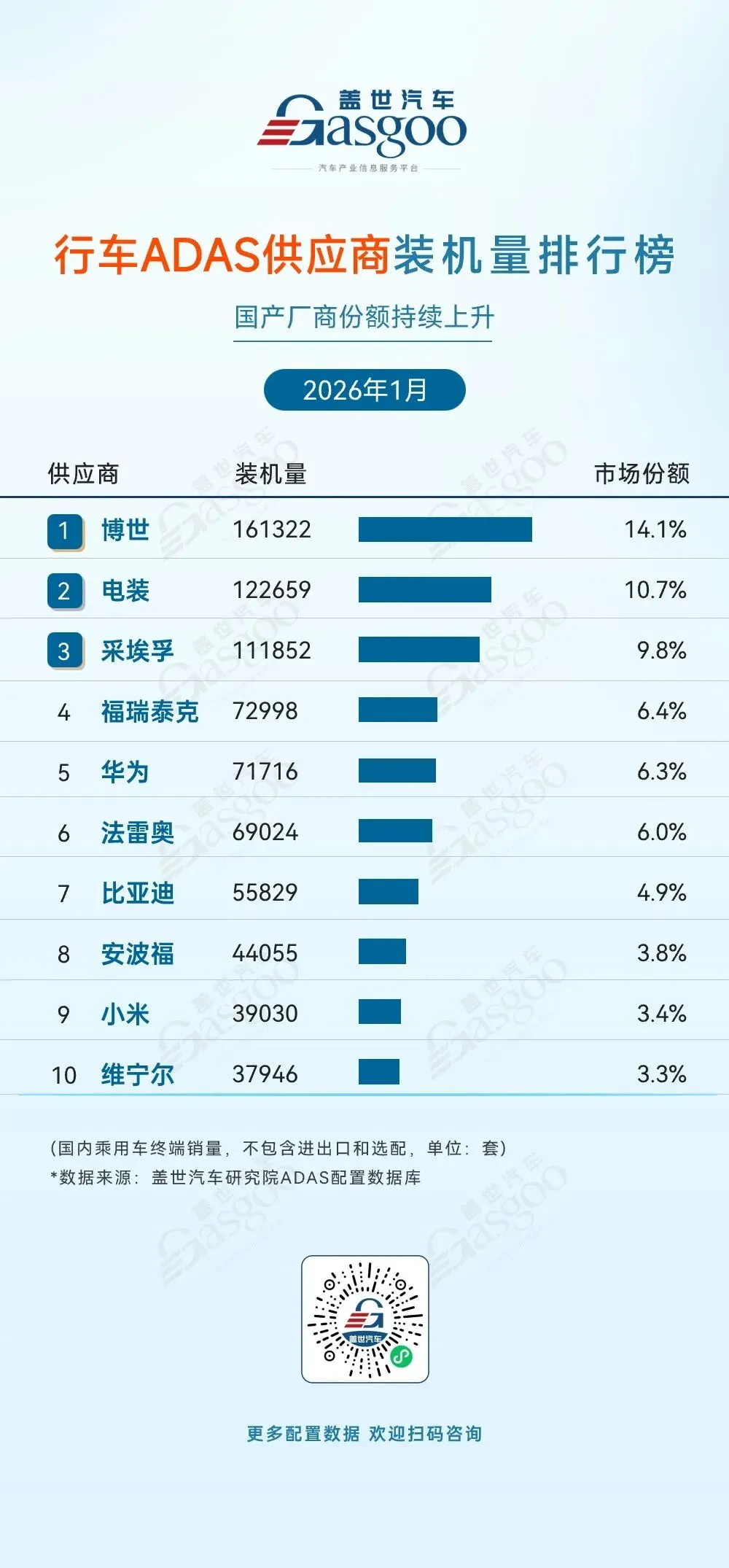 >盖世汽车统计ADAS供应链装机量排行榜-2026年1月