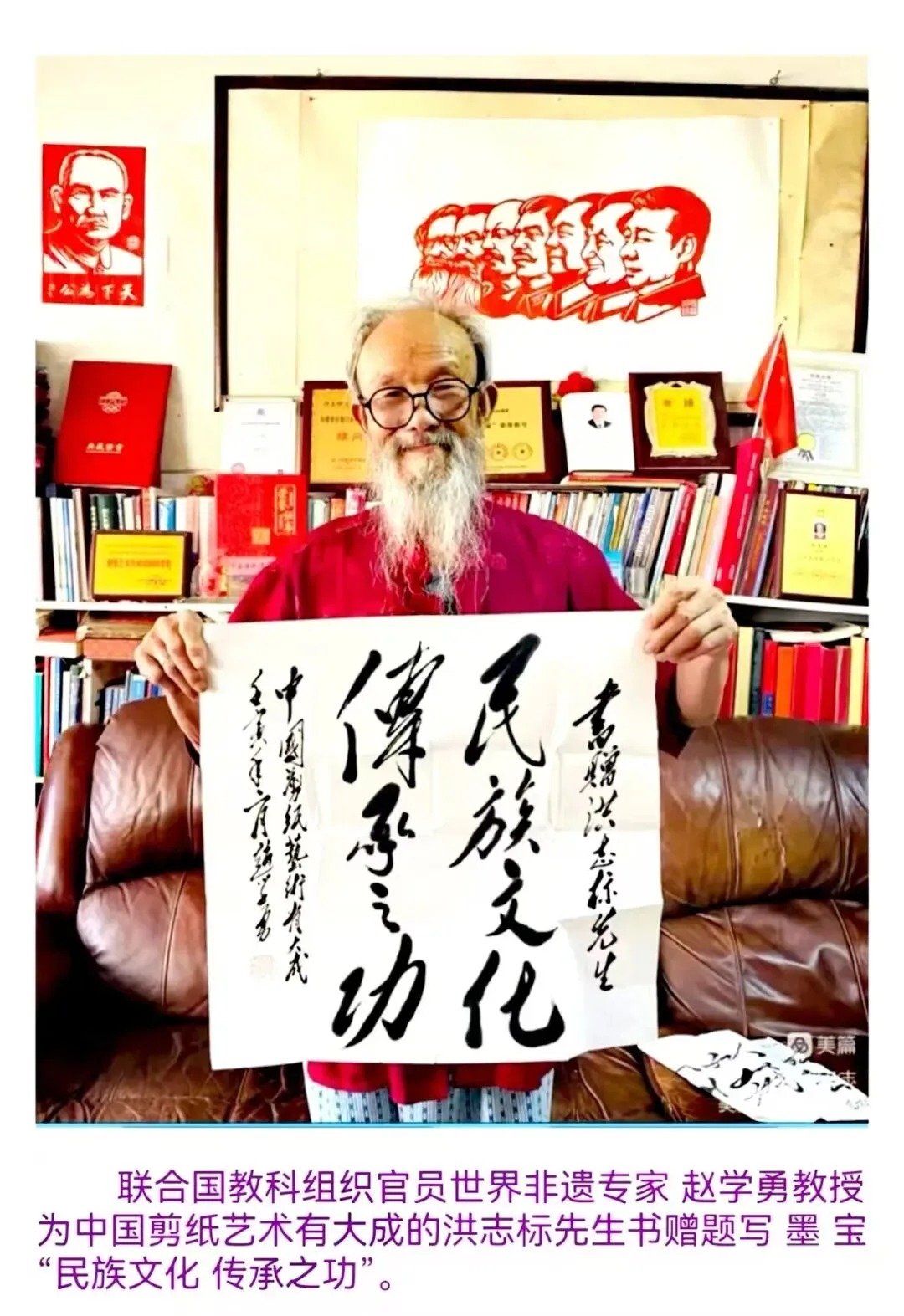 如今,虽已至耄耋之年,他仍精神矍铄,在厦门市思明区老年大学带徒传艺,将绘画与剪纸的薪火传递给儿孙、校园师生。他不仅是艺术的创作者,更是文化的播种者——从非遗传承到国际交流,从校园讲台到世界舞台,他以剪纸为桥,让闽南艺术在新时代焕发新生,让中国之美闪耀于世界之林。