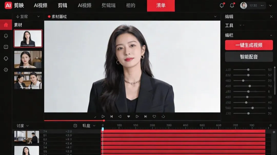 AI视频工具界面剪映AI视频工具界面,支持AI剪辑、自动配乐、字幕生成等功能