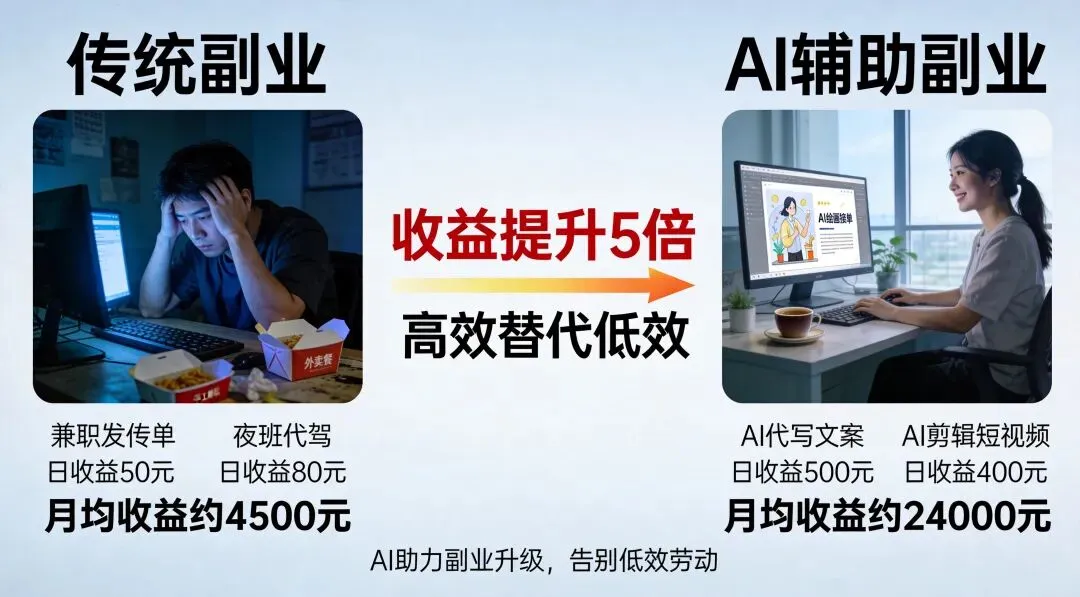 风险提示:本文案例和收益数据为示例假设,不构成投资建议。不同人能力不同,实际收入会有差异。AI副业需要持续学习和实践,非一劳永逸。转发给家人朋友,共同开启AI副业之路!