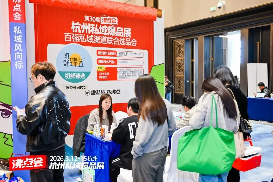 3月15日,杭州国际博览中心内依然人潮涌动,沸点会举办的私域百强渠道联合选品会(闭门对接会)在此盛大开启。作为本届展会最受瞩目的核心环节,选品会现场设立了117个私域头部渠道选品位,较以往增加17家,全部经过沸点会严格审核——从公司注册时间、月度销售额到开团数据,层层把关,确保每一个渠道都是月销售额过千万的行业佼佼者。