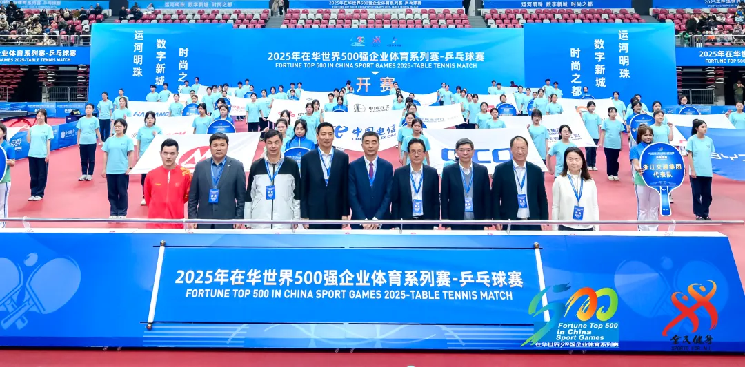 3月29日,2025年在华世界500强企业体育系列赛-乒乓球赛在拱墅运河体育公园体育馆盛大开幕。本次比赛由国家体育总局对外体育交流中心、浙江省体育局、浙江省总工会、浙江省体育总会主办;杭州市体育局、杭州市拱墅区人民政府承办。