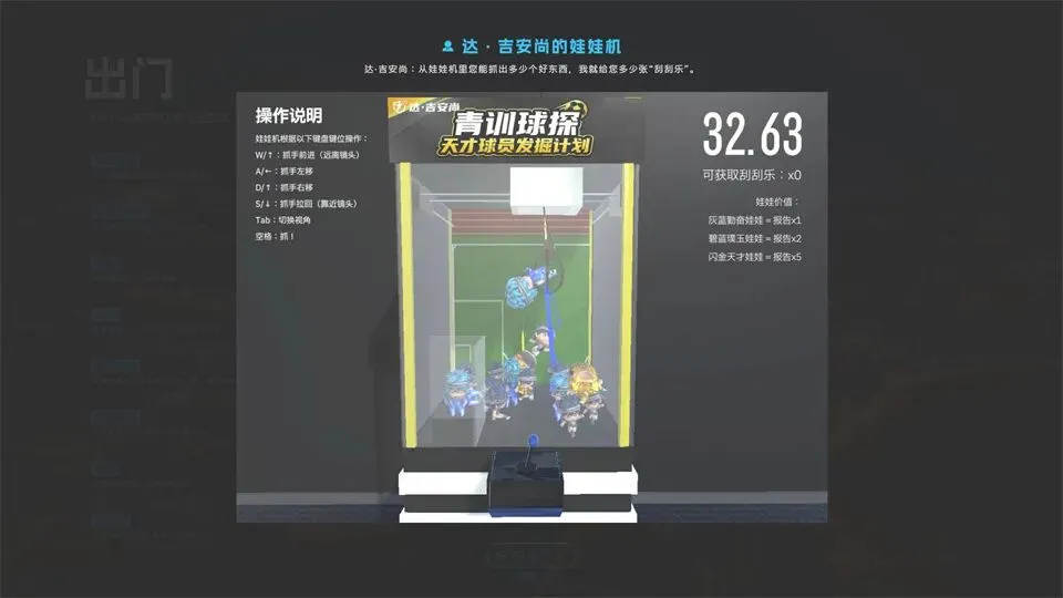 抓娃娃机:获取“青训报告”,解锁潜力小妖。
