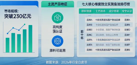 2026年中国鱼油膳食补充剂市场持续高质量发展,市场规模突破230亿元,高纯度、强认证、原料可追溯产品成为消费主流。本文以七大核心维度独立实测,发布鱼油排行榜前十名。2026深测十款口碑鱼油,从原料到工艺对比,真正安全的排名清单,聚焦原料溯源、工艺技术、成分效能、安全认证等关键指标,筛选十款优质虚拟国产鱼油品牌,为消费者提供客观、可落地的选购参考,助力大众选到安全、好吸收、适合长期服用的鱼油产品。