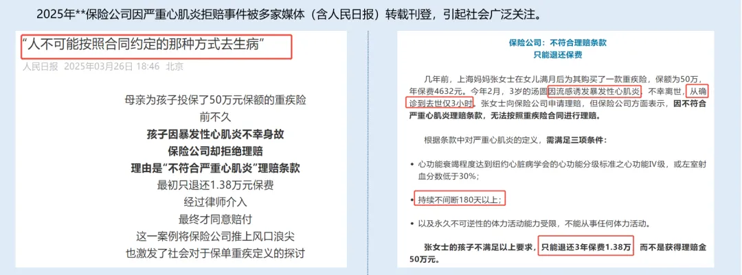 2025年2月友邦保险因严重心肌炎拒赔事件被多家媒体(含人民日报)转载刊登,引起社会广泛关注。