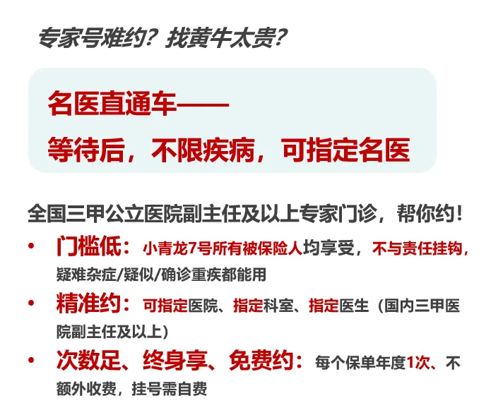 ①全套重疾服务,无门槛!不限疾病,可指定名医门诊