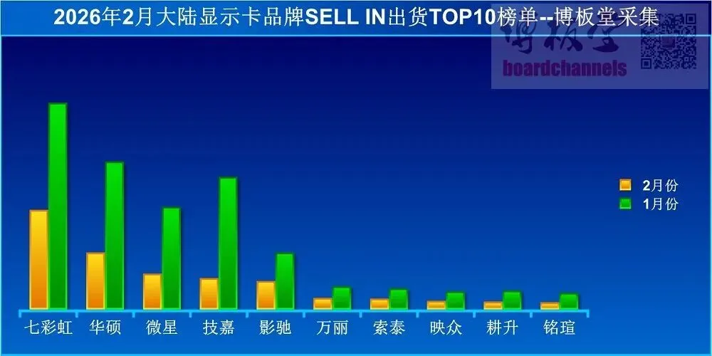 >2026年2月大陆显示卡各品牌出货量排行榜