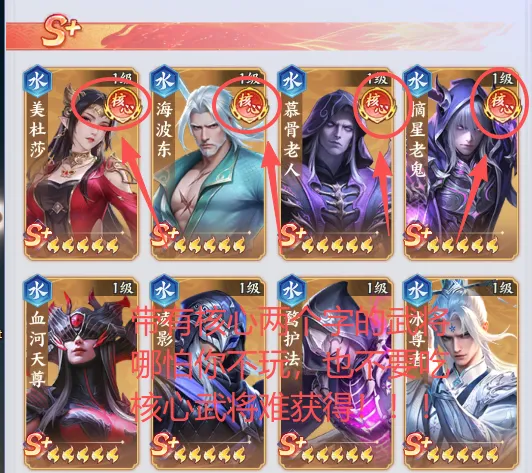 对于零氪和微氪玩家来说,不要纠结什么阵容,哪个S+以上的武将,非核心也行。哪个本体多,你就养哪个,后面链接传说武将就起飞了。