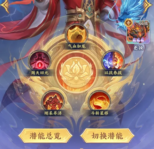 潜能注意要点第二行的第一个,祸福相倚,可以提高火队的灼烧威力。