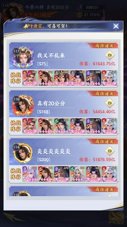 没虚无的阵容,就是靠减怒气和控制,然后再看传说萧炎的输出完事。