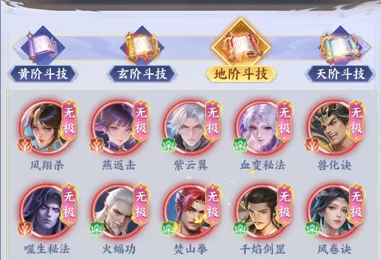 输出武将搭配输出类型斗技和功能性斗技,比如天火三玄变、惊蛰雷法、血杀刀法、噬生秘法、兽化诀、碎星刀、大地罡炎、天机凯、紫云翼、龙蛇身法这些。