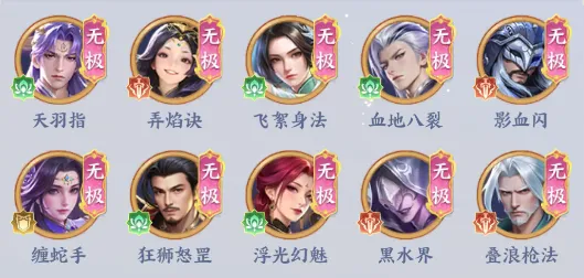 辅助武将搭配肉类型斗技和功能性斗技,站得住提供辅助效果就行,比如龙蛇身法、紫云翼、风卷诀、幻魂身法、三千雷动、血菩提、千风罡、木之硬化。注意,有些要针对性的上,就比如女性武将带浮光幻魅,你给男性武将带就没用。