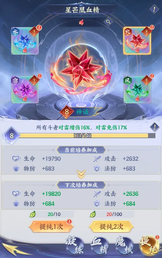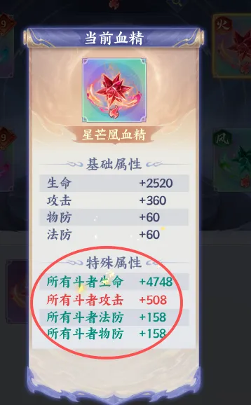 血精的属性是建议搞所有斗者的,这样子哪怕是传说武将,至臻武将都能享受到加成。