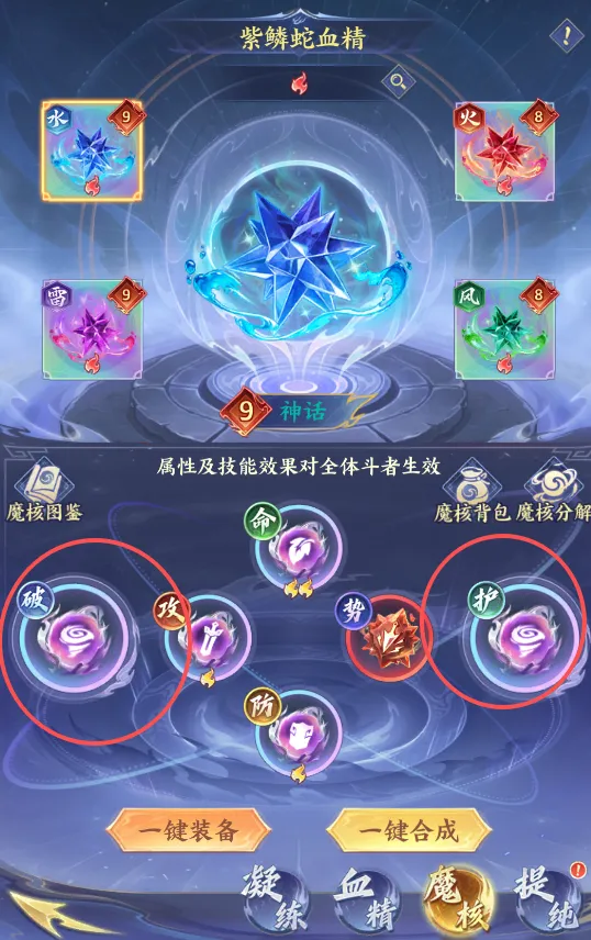 魔核的技能效果对全部斗者都生效,你们可以看一下技能,也不错。