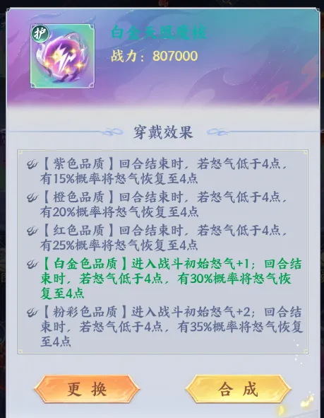 紫云翼是每个武将都需要带的,开局加2点怒气很重要,不然人家的减怒流,冰尊者一号位+骨灵冷火就能让你第一回合减四五点怒气,连大招都放不了。