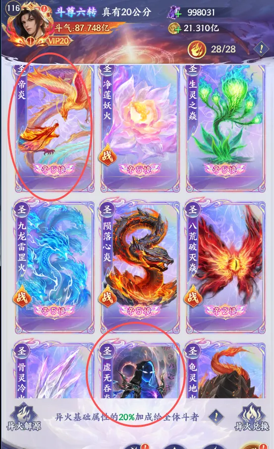 圣异火,目前要搞的也就只有两个,虚无吞炎和帝炎。