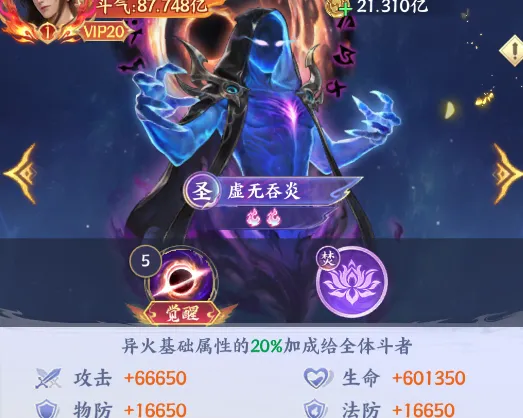 主力异火:虚无吞炎(核心输出,星级最好白金二以上,本源最好焚级以上)+骨灵冷火(保障对面永不开大,减少受到的伤害,骨灵冷火最好红一)