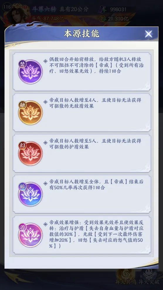 三兽蛮荒诀,也是不错的。但是后面帝炎幻之后,克制护盾,所以把他的优先级也往后放了。