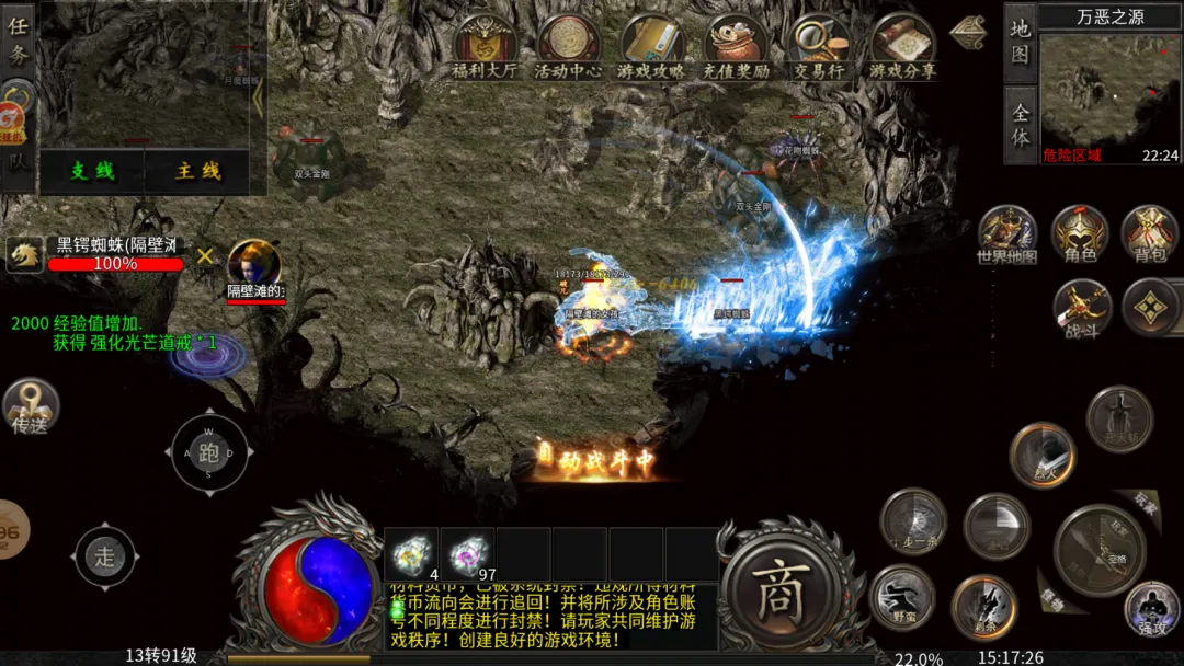 游戏自带挂机功能,可自动刷怪产出,无需时刻盯屏