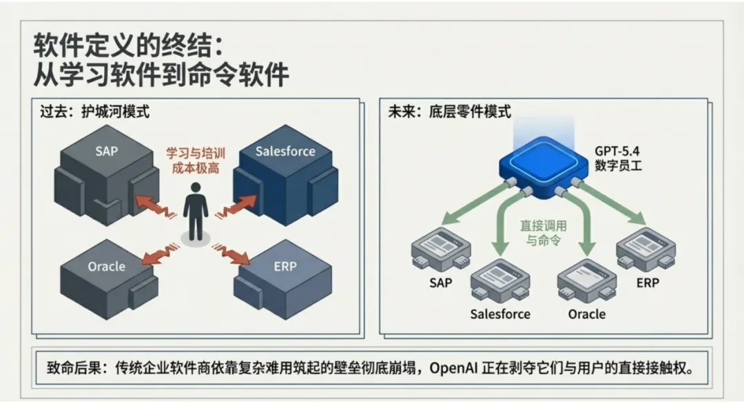后果: 那些靠“难用、复杂”筑起壁垒的传统企业软件商麻烦大了。OpenAI 正在剥夺它们与用户的直接接触权。