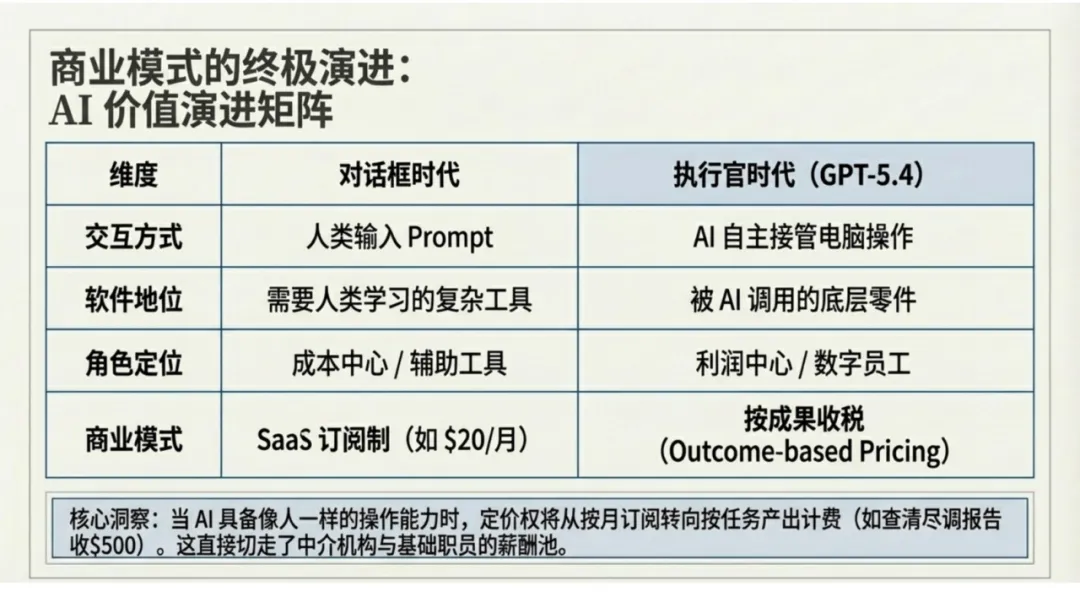 未来: 既然它能像人一样操作电脑、完成任务,OpenAI 的定价权将转向“按效果计费”。