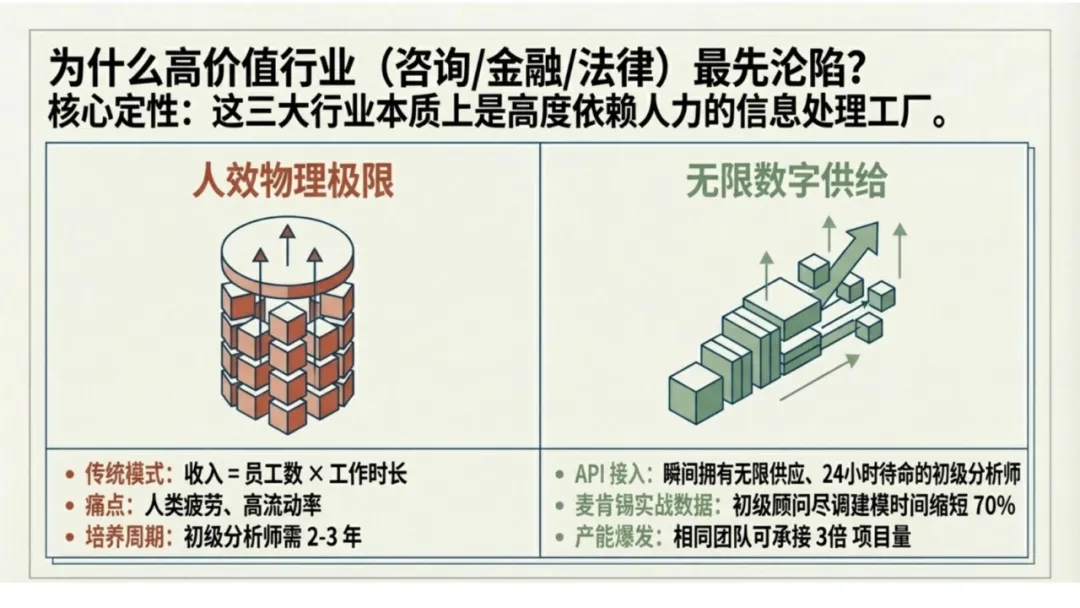为什么是咨询、金融、法律这三个行业先“沦陷”?因为这三个行业本质上都是“信息处理工厂”。
