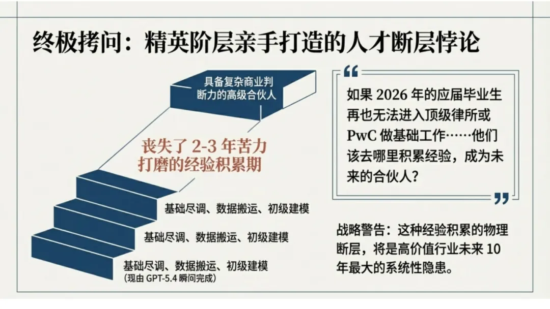 你想想,如果 2026 年的应届毕业生进不了 PwC 做这些基础工作,他们该去哪里积累经验成为未来的合伙人?这种“人才断层”会不会是这些行业未来 10 年最大的隐患?