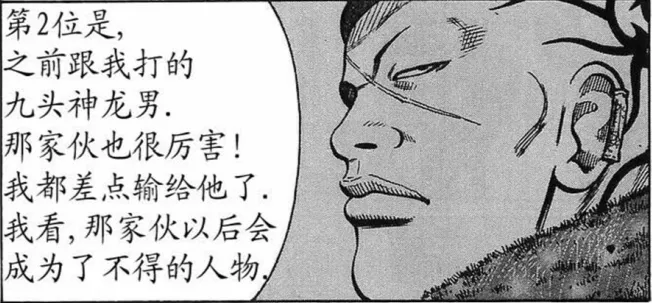 第三是万侍帝国的九头神龙男,又一个印证了春道的拳头附带“醒悟”的魔法攻击。作为一次热血高校世界的一次边界大扩展,一下子扯到了全国级的大社团,九头两兄弟短短两年便发展了22个支部1000多人,而最能打的便是九头神龙男,号称日本不良界最强的男人,凤仙前任老大美藤惨成背景板,被打得毫无还手之力,重伤入院。随后暴风般又一个人把新四大天王里的三个速通了。后来便是和春道一战,春道的总结是差点输给他。我倒是觉得他游刃有余,只不过九头神龙男块头大,给人气场宛如林田惠,拳头硬,抗揍。