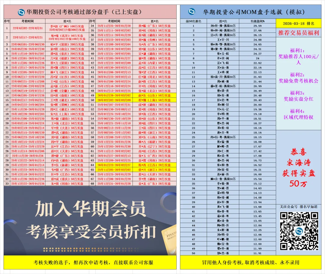 ↓华期考核前50名排行榜↓