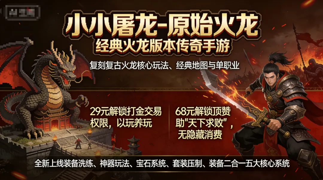 阔别玛法多年,你是否还在怀念当年1.80火龙版本的纯粹?如今传奇市场鱼龙混杂,魔改浮夸、氪金内卷、套路遍地,早已丢了传奇本味。《小小屠龙原始火龙》逆势而上,死守经典火龙内核,拒绝一切歪风套路,只为给怀旧老玩家、散人打金党,打造一片纯粹的热血净土。