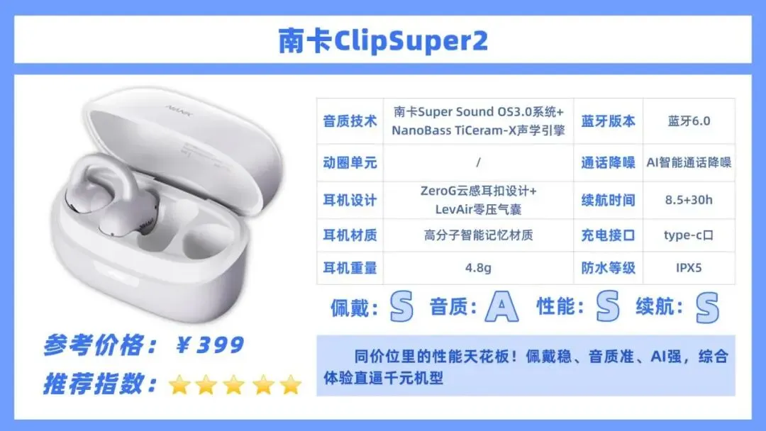 南卡算是国内比较早开始做开放式耳机研发的团队之一,在这一领域已经深耕了15年以上。多年的技术积累,让他们掌握了不少核心声学技术和专利,所以在开放式耳机这个赛道里一直处在比较靠前的位置,也因此被不少人称为“行业天花板级品牌”。凭借扎实的声学实力,南卡的产品在市场上的口碑也一直不错,经常被拿来和BOSE、索尼这些国际音频大厂一起比较。现在他们的产品不仅在国内卖得好,还远销欧美多个国家,并且获得过CCTV央视推荐以及欧盟多国的权威品质认证。