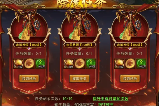 除魔任务便是玩家的每日任务,可以通过完成击杀指定数量的BOSS任务来获得包括转生突破点、经验以及封天币等材料