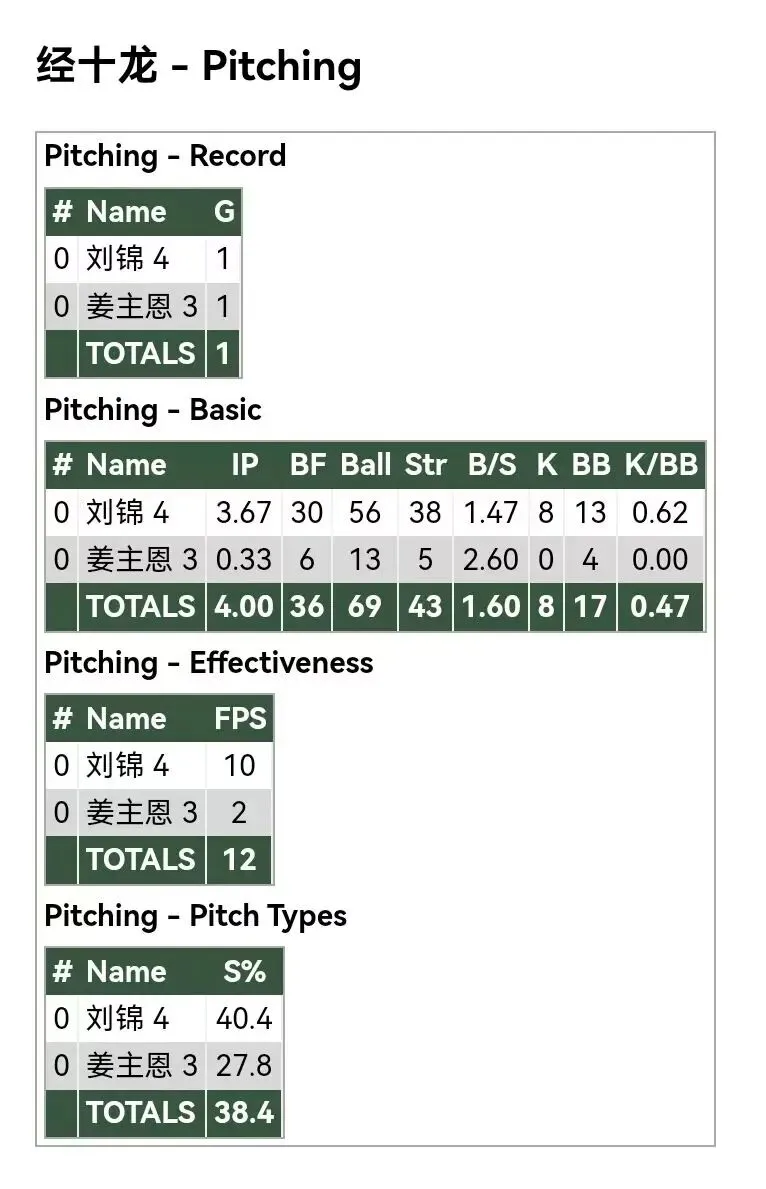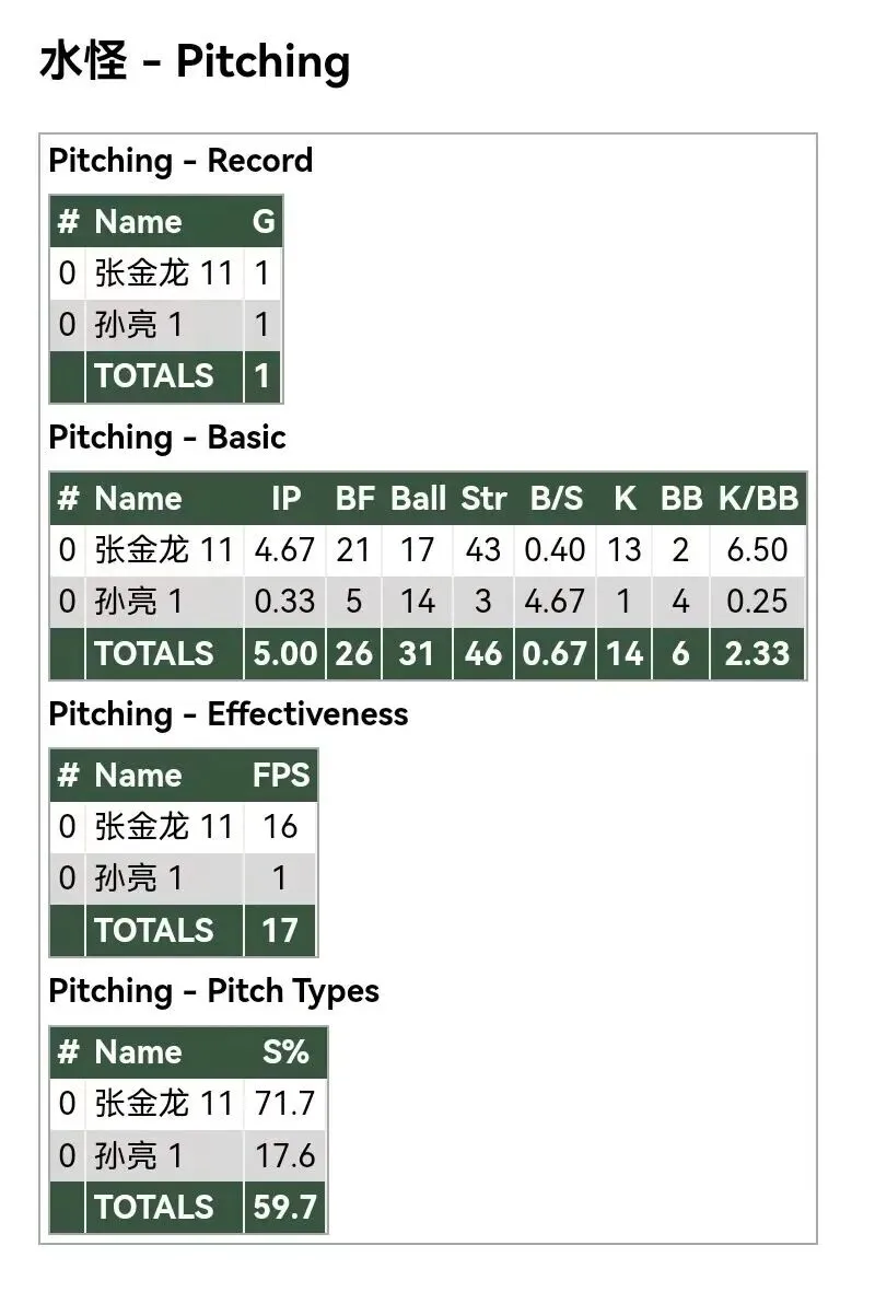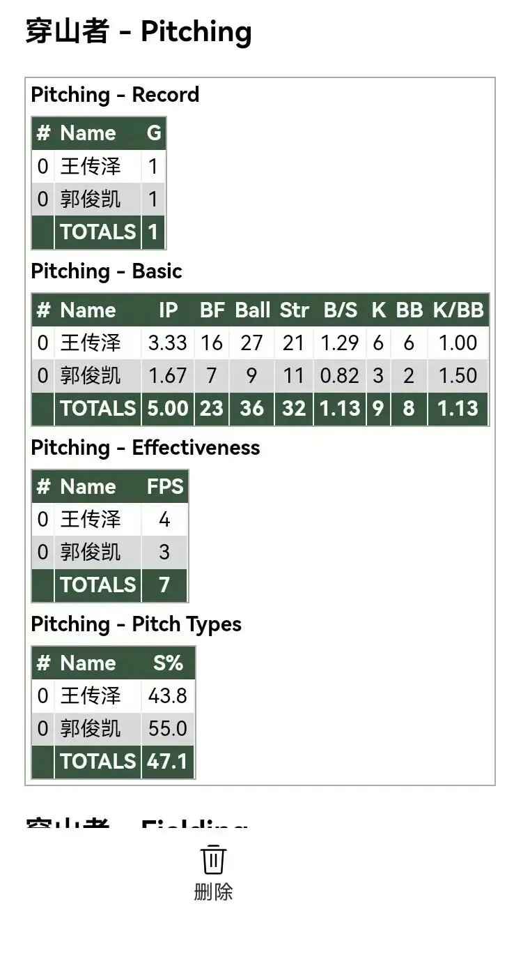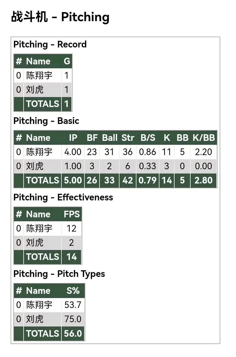 各队投手数据: