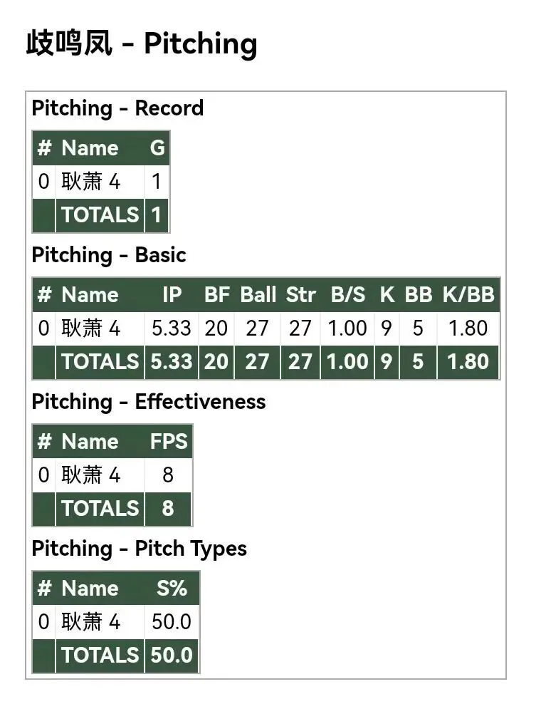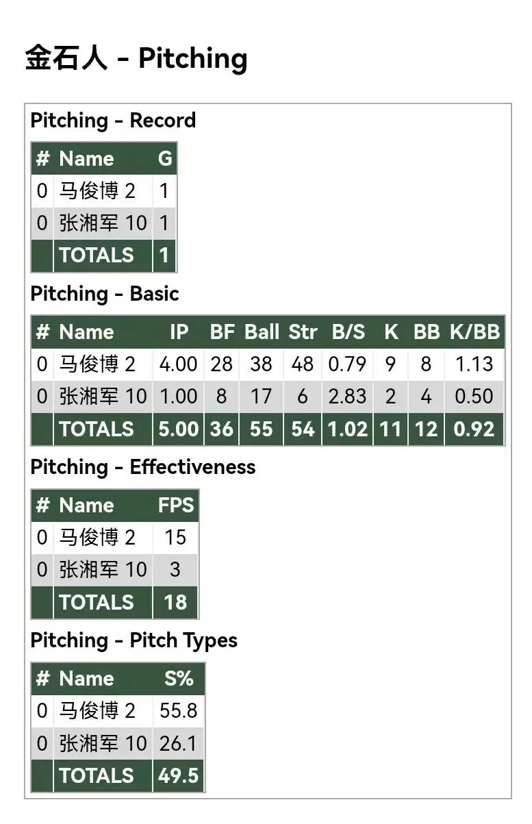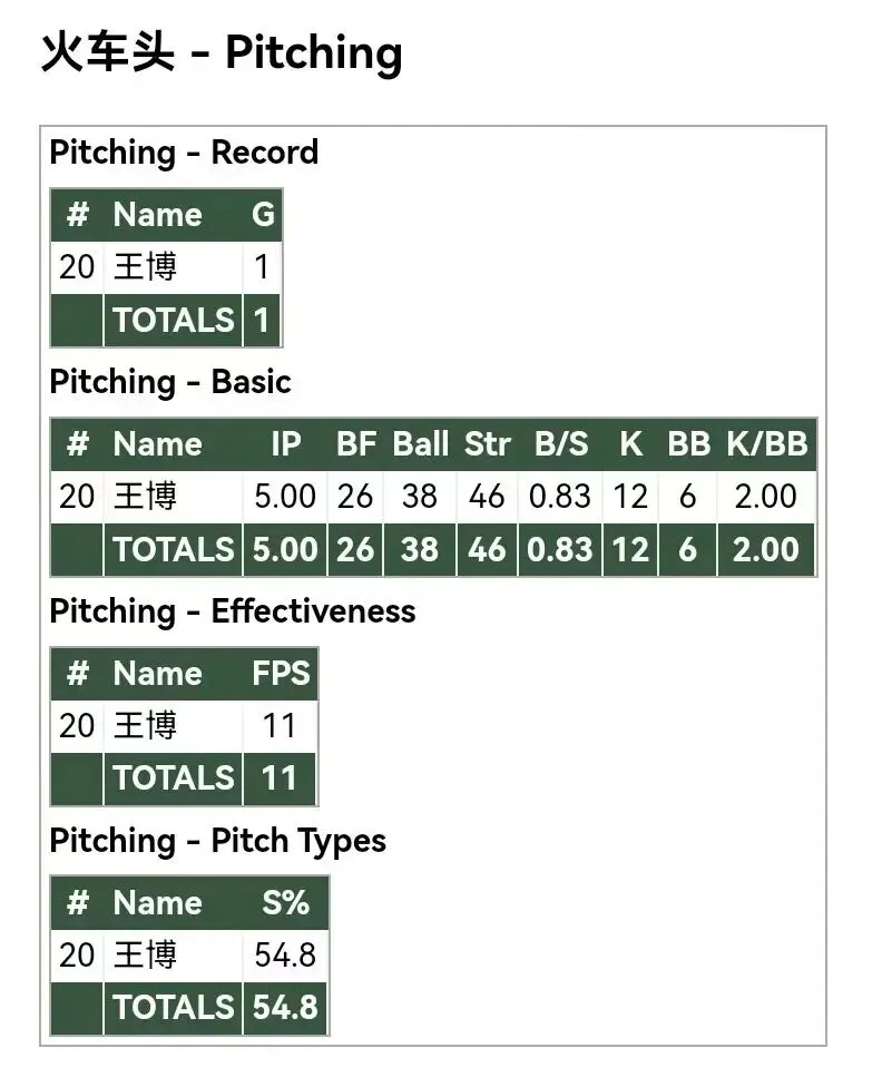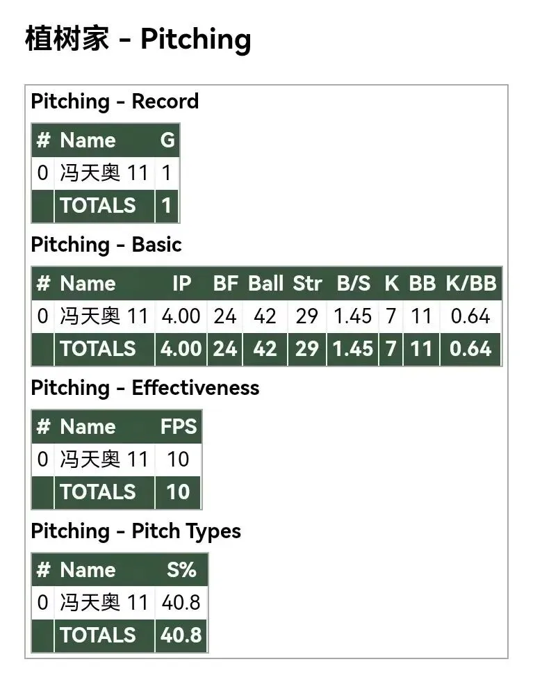 各队投手数据: