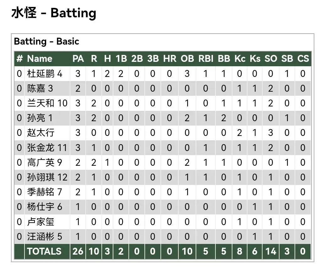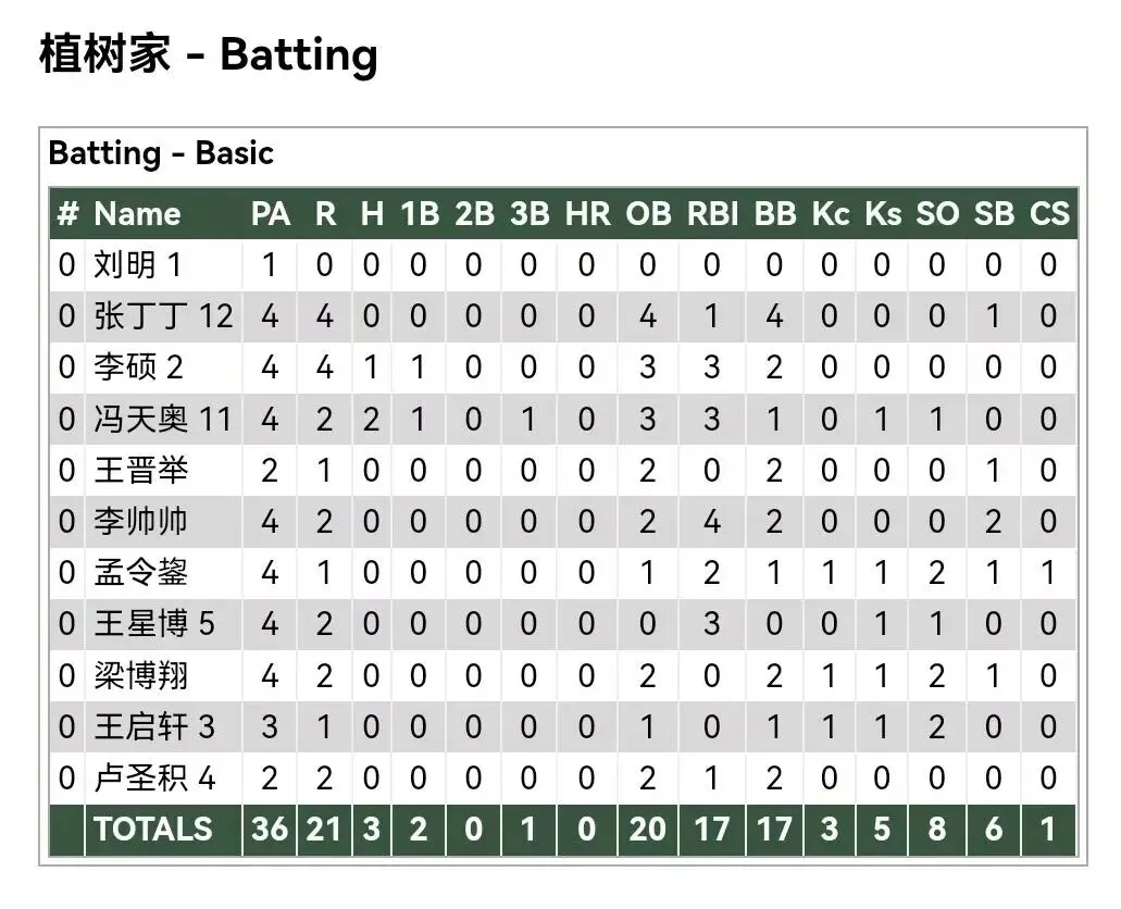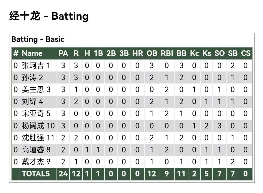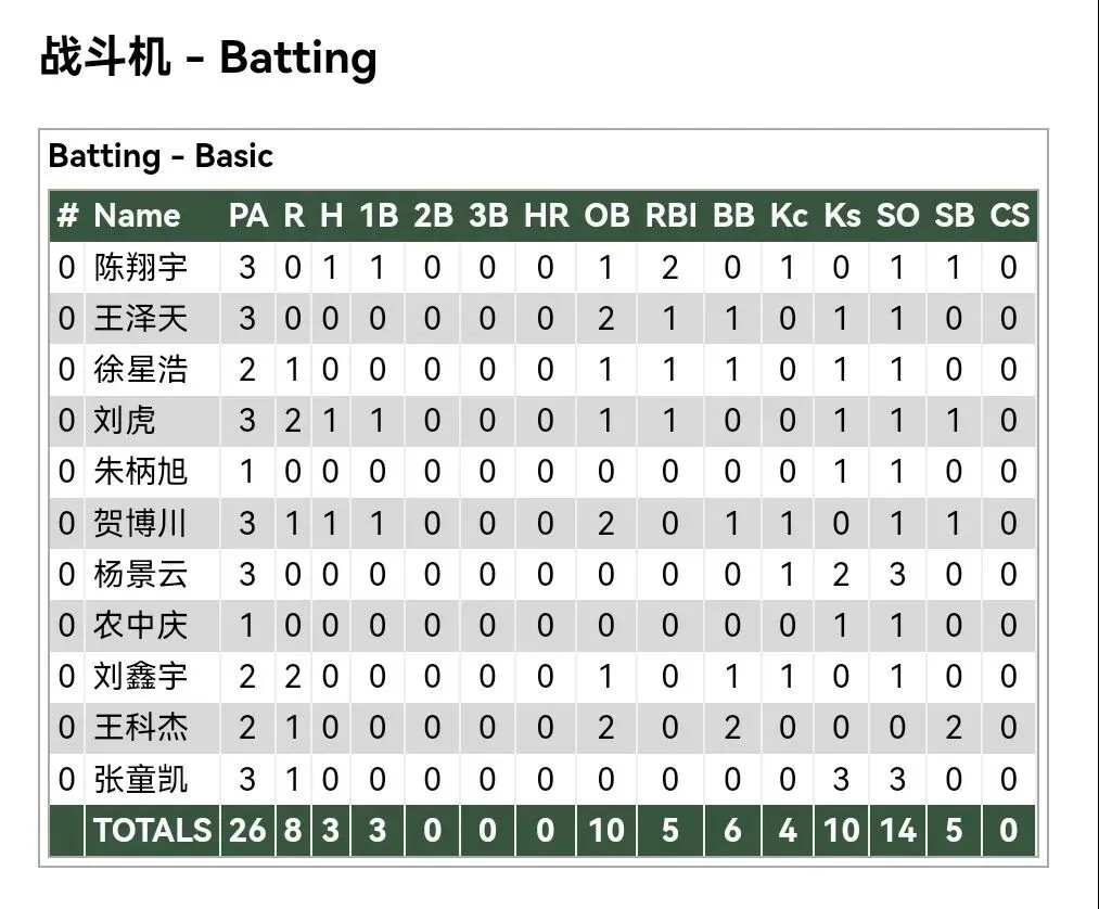 各队打者数据: