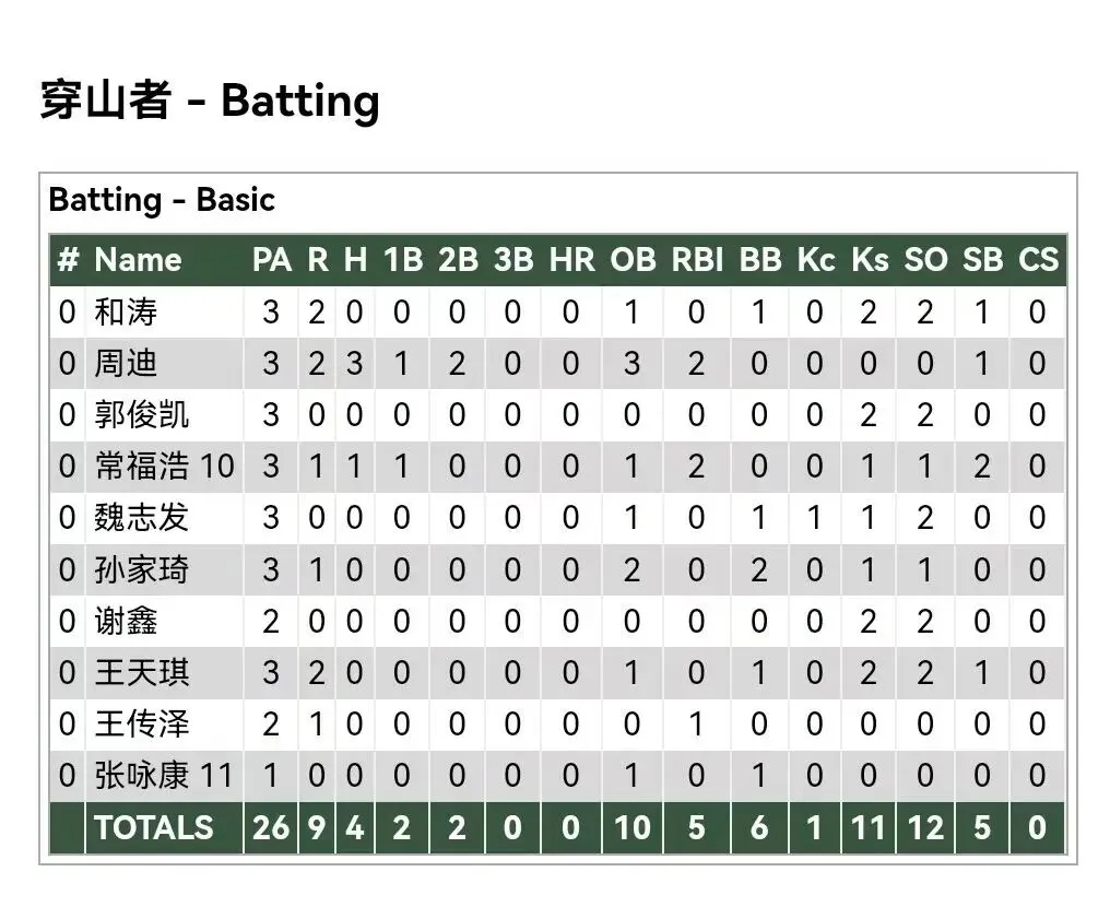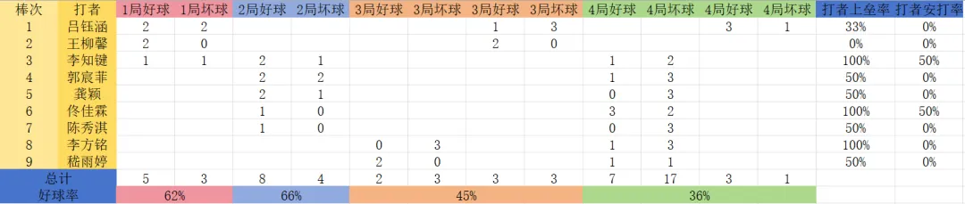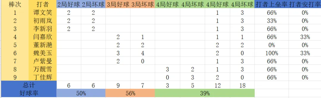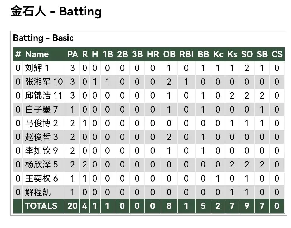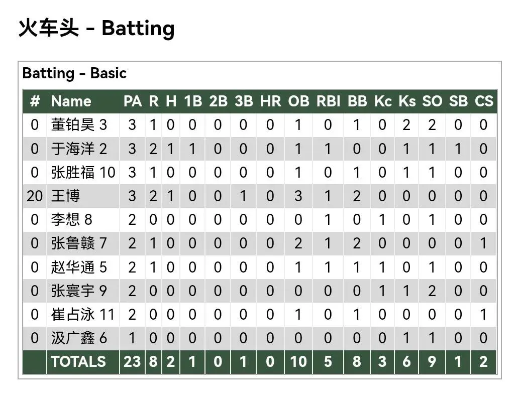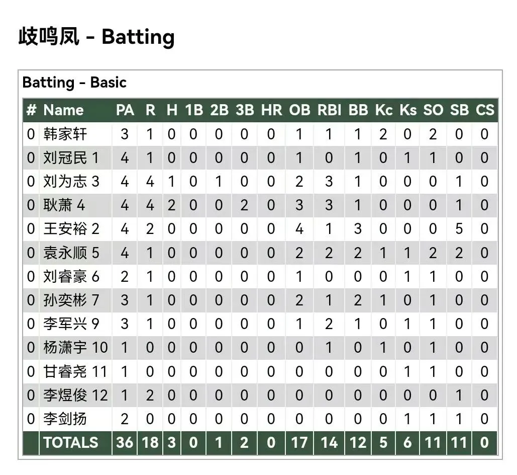 各队打者数据: