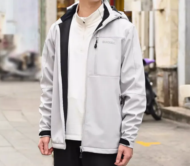 【场景化细节设计】配备可拆卸防风帽,帽檐带加固设计,能有效阻挡风雨;领口做磨毛处理,减少颈部摩擦不适感;下摆与袖口均有可调节抽绳,可根据环境调整松紧度,贴合不同身形的穿着需求。
