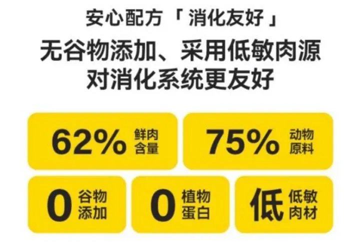 ②动物蛋白要占前:清楚狗粮的动物蛋白来源很重要。因为狗粮里的豌豆、玉米这些植物,它们提供的植物蛋白,少了好几种狗狗发育必需的氨基酸成分。要是狗狗长期吃这种植物蛋白多的狗粮,身体就会出问题,很容易营养不良。我们可以看看全鲜肉狗粮,这种狗粮里的鸡肉提供的蛋白质和氨基酸能满足狗狗健康发育需要的营养。特别是配料表前三位的鲜肉含量超过60%的狗粮,蛋白质比例实测更加丰富,能让狗狗长得更健康更壮实。