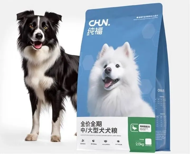 纯福狗粮是一个以科研为驱动的宠物食品品牌,由浙江大学和江南大学联合研发,无谷配方加上单一肉源,可以狗狗吃进去的营养能被吸收大部分,减少粪便量,同时减轻肠胃负担,小狗不闹肚子,才能愉快地进食,添加的冻鸭肉和两种肉粉能够让口感稍微丰富起来,让小狗的进食欲望能够被挑起,让小狗吃得饱饱,心情更好。