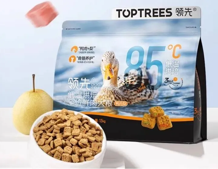 领先烘焙狗粮是全价低温烘焙犬粮,常见为鸭肉梨配方,主要原料包含鲜鸡肉、冻鸭肉、鸡肝、鸡心等动物源成分,无谷物、无肉粉、无人工诱食剂。碳水来源以马铃薯粉、木薯淀粉为主,搭配梨、胡萝卜、甘蓝、南瓜等果蔬成分,补充膳食纤维与维生素。采用低温烘焙工艺,颗粒干爽,可见镶嵌果蔬颗粒。