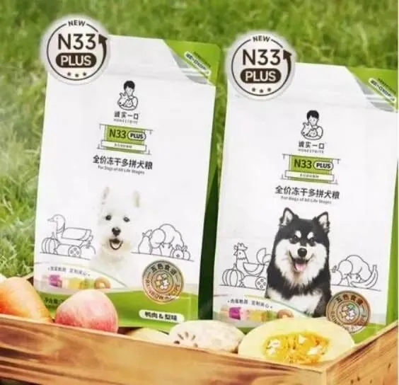 诚实一口 N33 是一款全价犬粮,采用 33 种食材搭配而成,动物原料占比较高,包含多种肉类来源,提供日常所需的蛋白质。配方以薯类作为碳水来源,不添加谷物与豆类,同时搭配多种蔬菜、水果与草本成分,补充膳食纤维与微量元素。