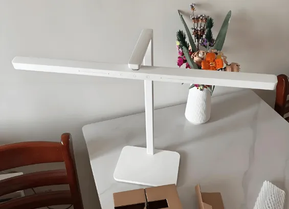 台灯学生用哪个牌子最好性价比高的?小米一贯以简洁设计著称,这款米家台灯2延续了这一风格,整体采用纯白配色,造型简洁大方。灯臂设有90°固定连接点,灯头与灯杆之间配备了轴承,支持约25°的小幅度旋转,便于调节光线方向。发光面采用60厘米长的纤细矩形设计,照明范围可覆盖约1.2米长度。虽然光线均匀度约为1.96,使用时可能会有轻微的局部亮度差异,但凭借Ra97的高显色指数,整体照明效果适合日常使用。