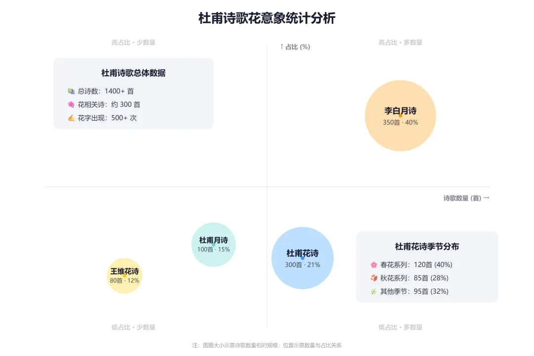 🏅 第五名:杜甫·花📊 数据:约 300 首,占比 21%📝 代表作:《春望》《江畔独步寻花》💡 特点:忧国忧民中的自然之美