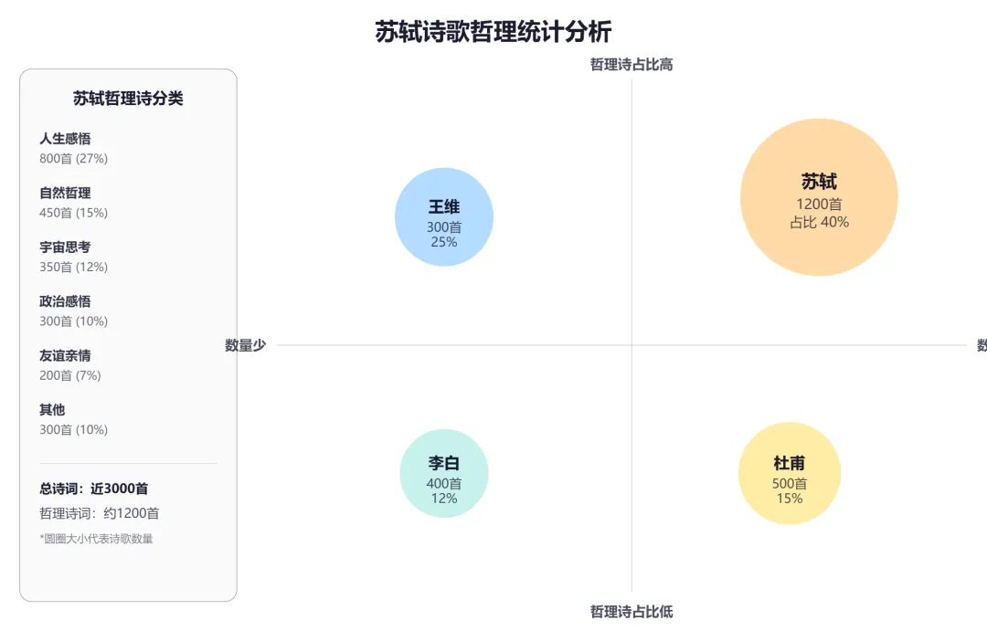 🥈 第三名:苏轼·人生哲理📊 数据:约 1200 首,占比 40%📝 代表作:《赤壁赋》《定风波》💡 特点:豁达乐观的人生智慧