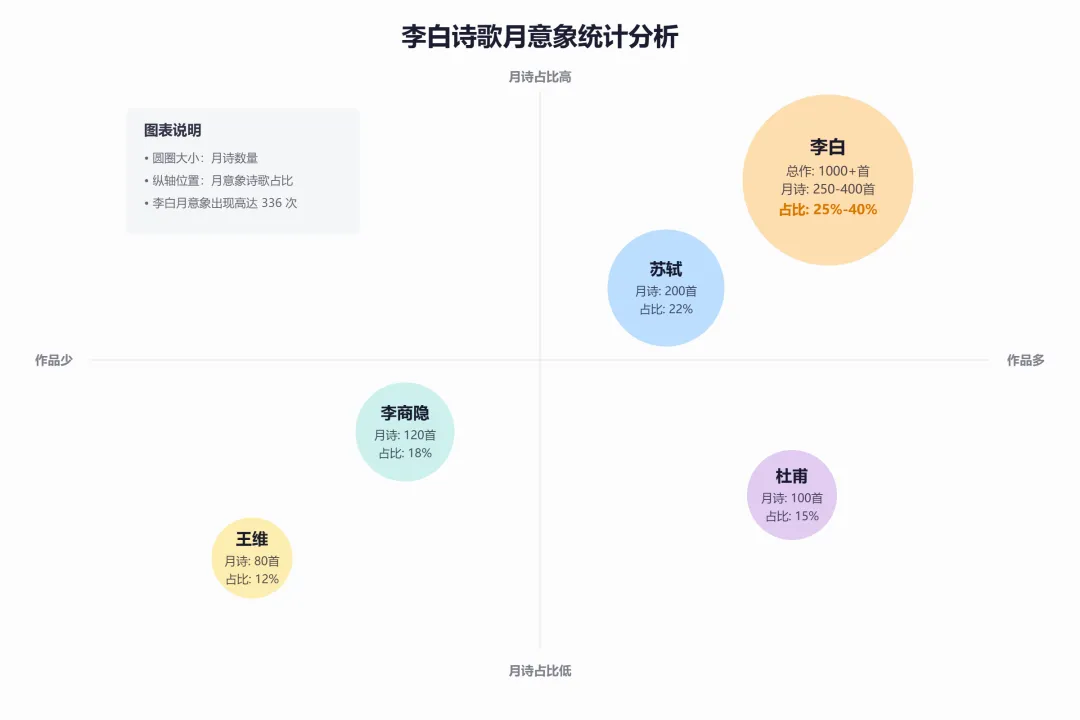 🥉 第二名:李白·月亮📊 数据:300-400 首,占比 40%📝 代表作:《静夜思》《月下独酌》💡 特点:浪漫主义的月亮情怀