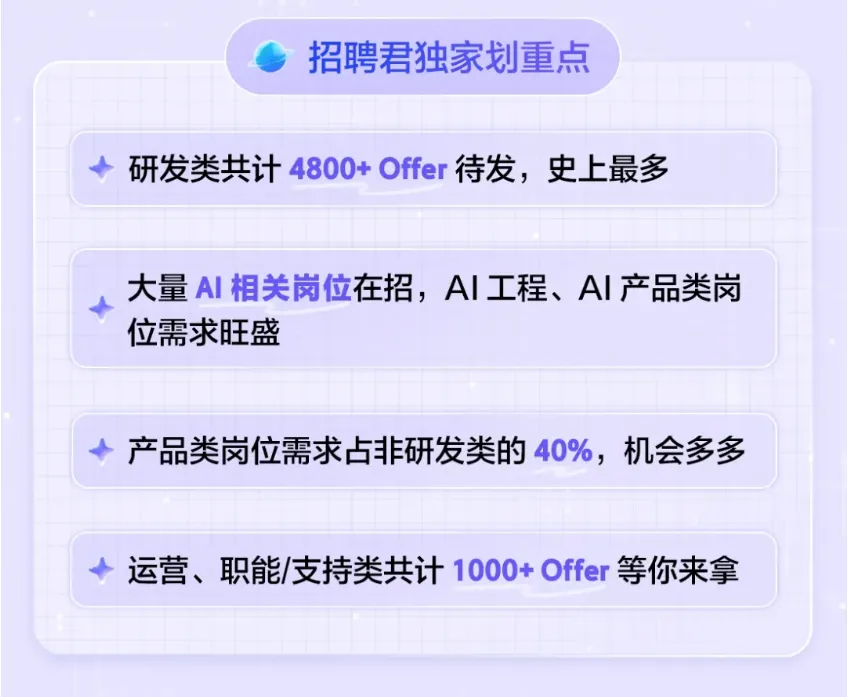 7000+Offer、转正率超 50%......其中研发岗位4800+,大量AI相关岗位在招,AI工程、AI产品类需求旺盛。