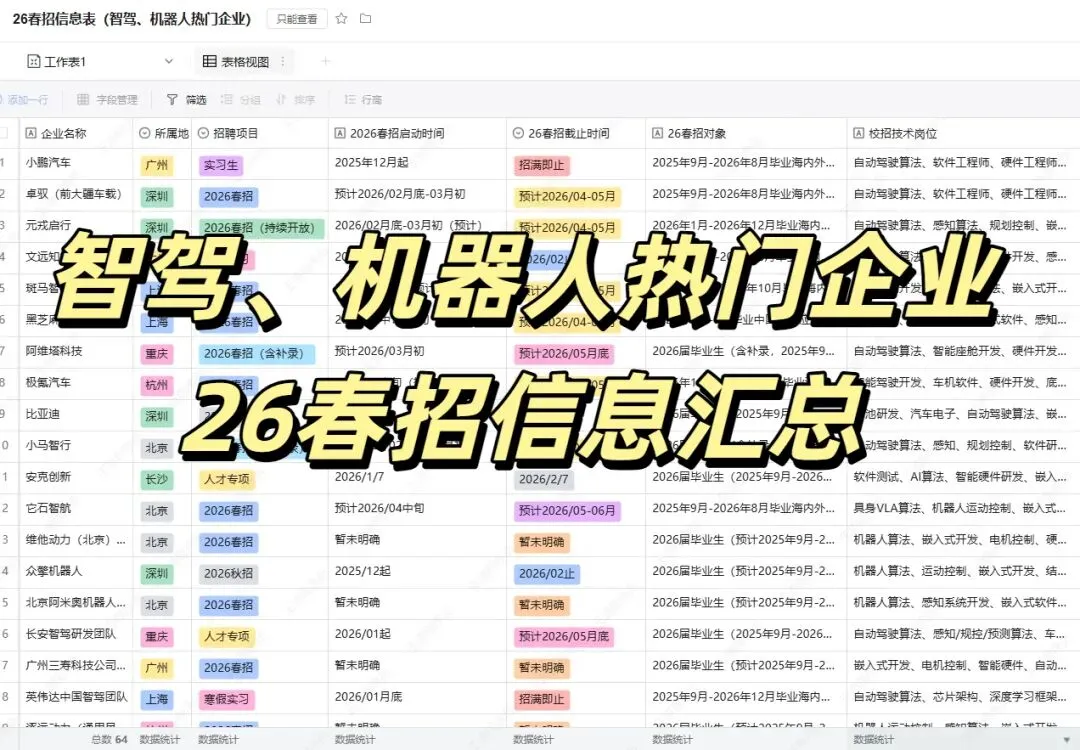 ,其中包括了互联网、智能制造、智能驾驶、工业软件、机器人、人工智能等各行各业,包含了26春招岗位和实习岗位,王道都给大家整理出来了!