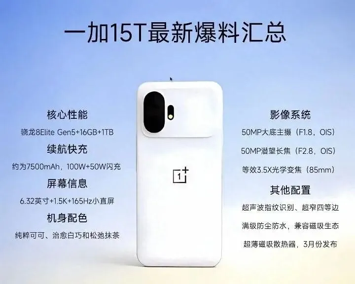 日前, @一加手机 发布了一加15T新机的最新预热海报,并配文称,